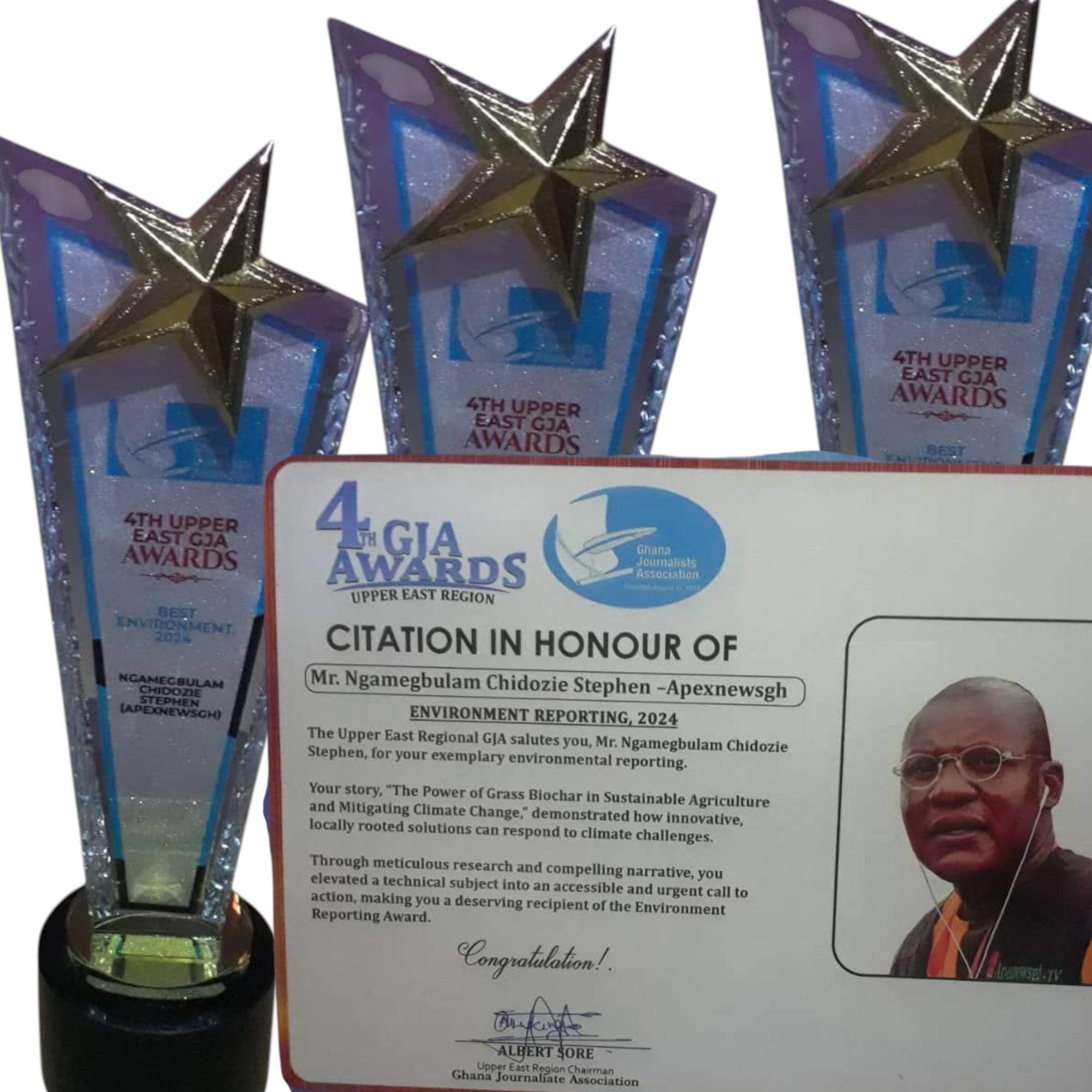 He was crowned Best Environment Reporter at the 2025 edition of 4th Upper East Region Ghana Journalist Association (GJA) Awards for his outstanding contributions to environmental reporting and climate change awareness.