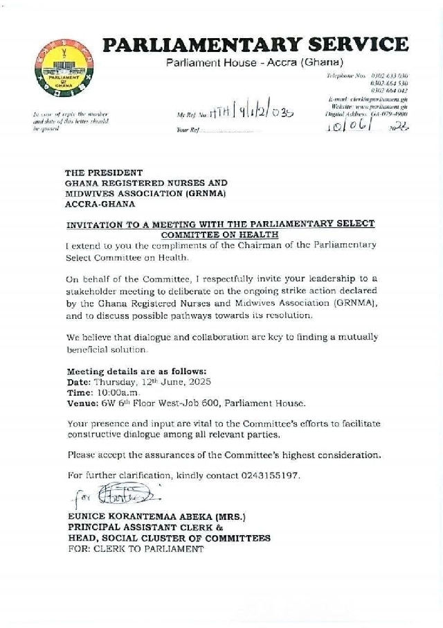 The Chairman of the Parliamentary Select Committee on Health, Mr. Mark Kurt Nawaane, has called for an emergency meeting with the leadership of the striking nurses and midwives. Apexnewsgh reports