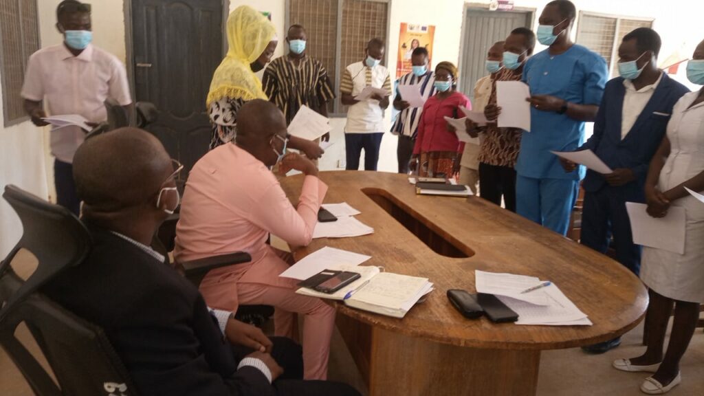 The Tempane District Assembly led by the District Chief Executive (DCE) Issaka Anabida has inaugurated District Health Committee (DHC). According to the constitutional mandate; the Ghana Health Service and the Teaching Hospital act of 1996, Act 525 requires the establishment of the District Health Committees whose duties are mostly to advise the District Director of Health Service in the performance of his duties in the district and shall perform such functions of the Council in the district as the Council may assign to it. Meanwhile, during the inaugural ceremony, the DCE charged the committee to be focused on their mandated responsibility. “I want to charge all members of the committee to put aside every other personal interest and focus on the collective health interest of the people of this District”. He charged According to Mr. Anabida, he followed the health sector performance with keen interest and the last time he checked, the current performance they are enjoying at the end of 3rd quarter 2021, the Tempane district was placed 1st. “I want to task this committee to ensure that, we don’t as slip down as a district, let every one of us here show commitment to ensuring quality healthcare is delivered in this district” He stressed The Upper East Regional Health Director Dr. Emmanuel Kofi Dzotsi who was present at the inaugural ceremony could not hide his excitement. According to him, the occasion made his day the happiest one since the year began because he was always wondering how the inaugural ceremony will be done for the first time in the history of Tempane District. He, however, admonished the committee to do their best to serve the people and forward any issue beyond their control to the Regional Directorate. He extended his appreciation to the DCE for his commitment to the health sector since he assumed office. The District Health Director Cosmos Minyila on his address heaped praises to the DCE for always availing himself to support the directorate whenever he’s called upon. He also used the occasion to announce that Tempane is 3rd in the region when it comes to Covid-19 public vaccination. He reported that the District had a few people infected with Covid-19 but they’ve all passed out and doing well. He charged his colleagues in the committee to put up their best for the District. The Regional Health Committee Chairperson Moriama Gumah swore the members into the office and pledged his readiness to work with them to the benefit of the people of Tempane district. Apexnewsgh.com/Ghana/Ngamegbulam Chidozie Stephen