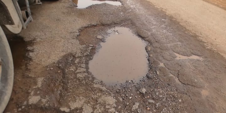 The potholes, some of which were quite deep, which is sometime mistaken by road users as 1 Village 1 Dam had already caused damage to several vehicles, and the fear of more accidents lingered in the air.